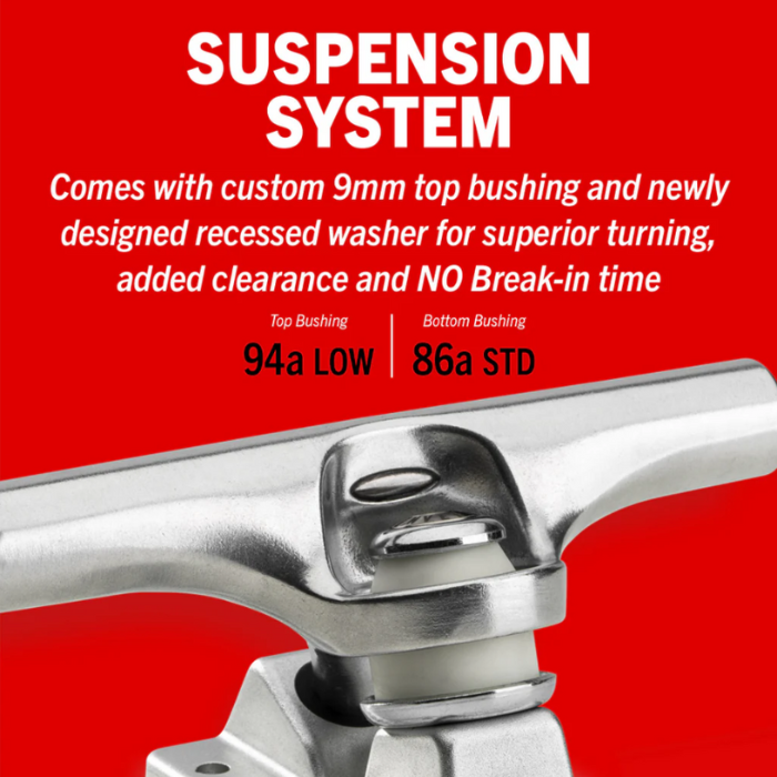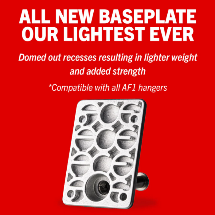 At the heart of their design is a patent pending technology providing a more stable anchor point for the kingpin. The innovative hollowed axle system and domed-out baseplate make it the strongest and lightest truck they've ever created. This cutting edge design sets a new standard for the future of skateboard trucks.