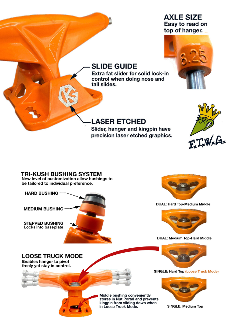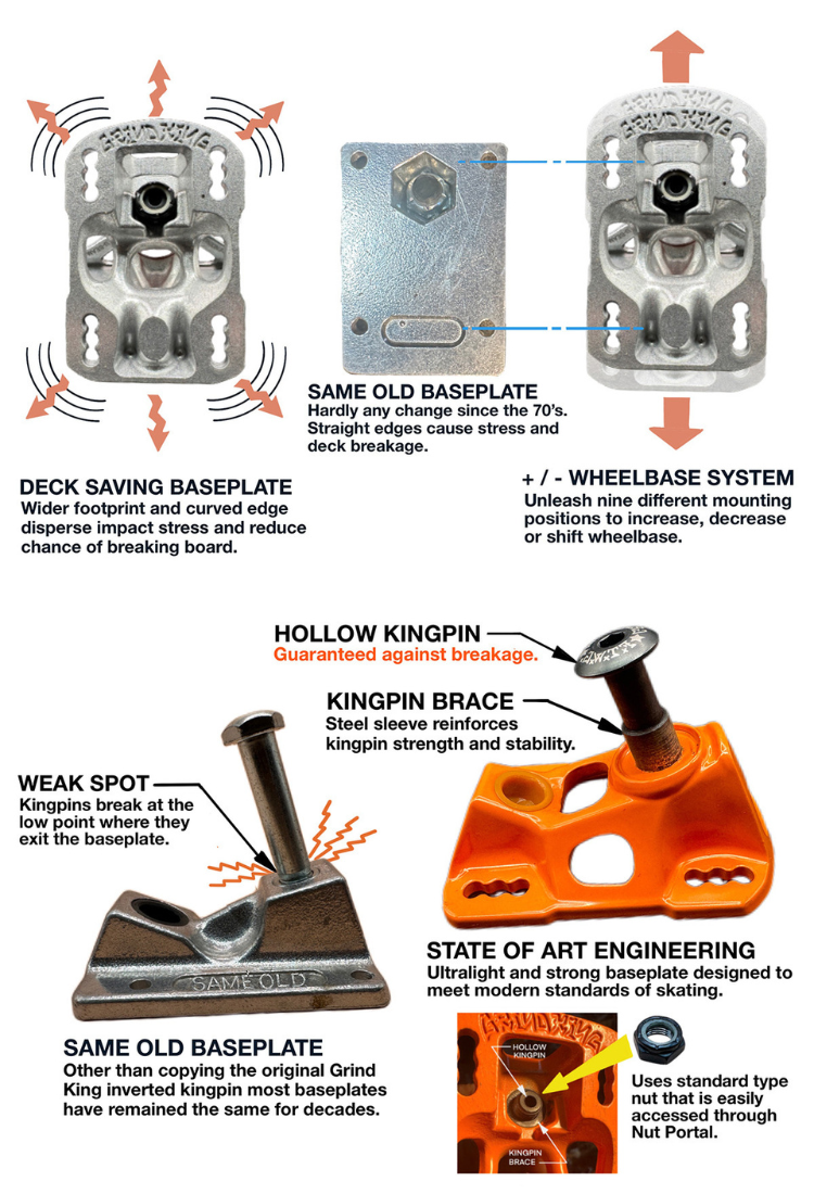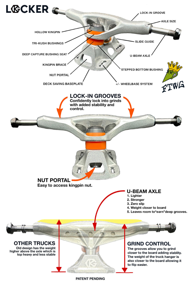 Experience the future of skateboarding with The Locker 1, Grind King's revolutionary new truck that redefines what's possible on a skateboard. Packed with groundbreaking innovations, The Locker delivers unmatched control, stability, and customization, letting you fine-tune performance to perfectly match your unique style and the demands of any terrain. This is more than just a truck—it's a game-changer, engineered to take your skating to the next level.